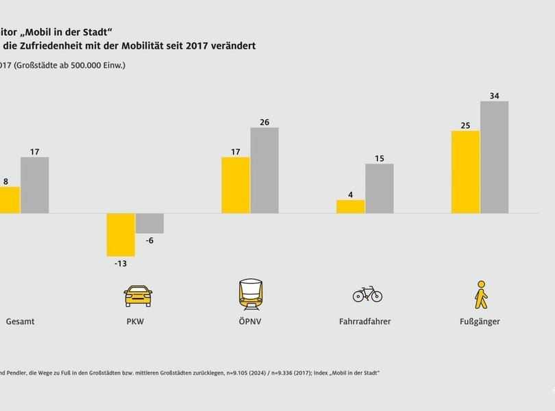 mid Groß-Gerau - Die Zufriedenheit mit der Mobilitätssituation in den Großstädten ist im Vergleich zu 2017 deutlich gesunken. ADAC / ADAC Grafik