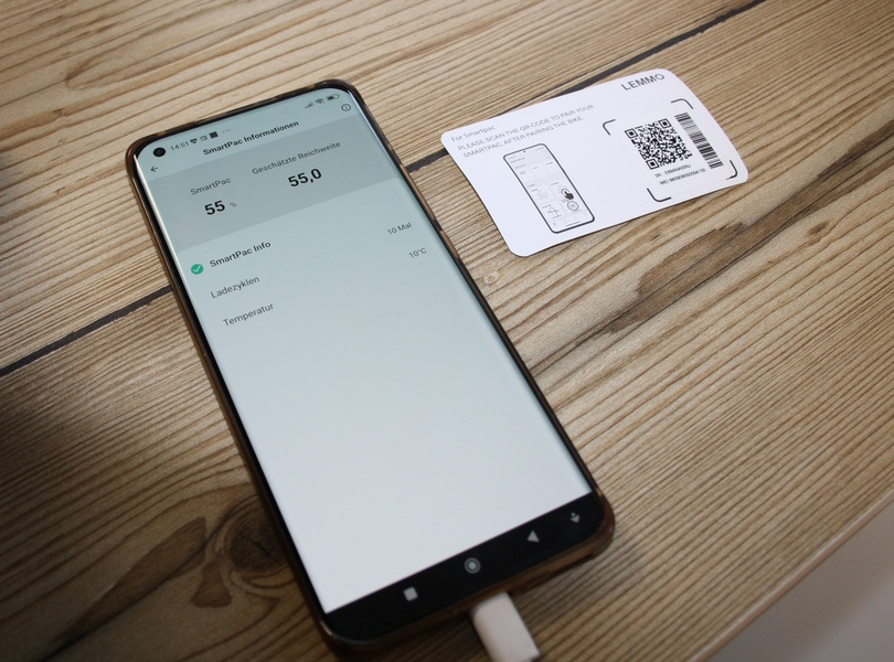 Per Lemmo-App lassen sich Smartphone und Smartpac verbinden. Das Paaren funktioniert mit dem mitgelieferten QR-Code kinderleicht Foto: SP-X/Mario Hommen