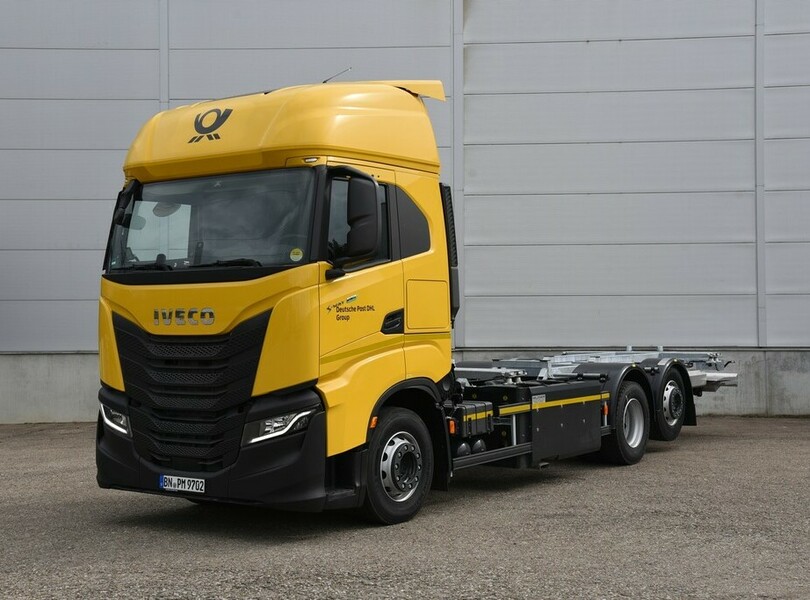 Iveco S-Way CNG 6x2 der Deutschen Post mit Wechselbrückenfahrgestell. Foto: Autoren-Union Mobilität