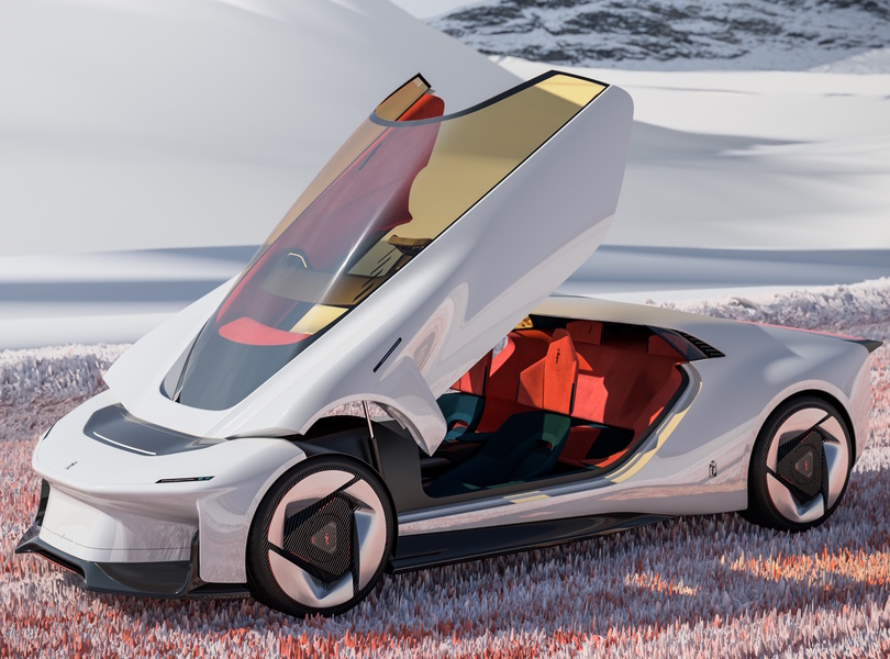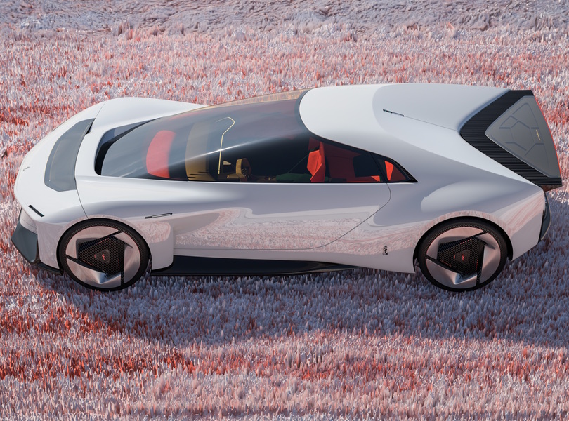 Angesichts der futuristischen Optik würde man einen reinen Elektroantrieb erwartet. Doch der Enigma GT hat einen V6, der allerdings mit Wasserstoff befeuert wird Foto: Pininfarina