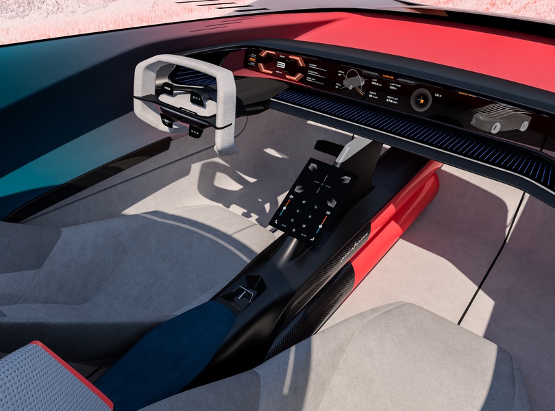 Der Innenraum setzt auf kräftige Farben und Displaywelten Foto: Pininfarina