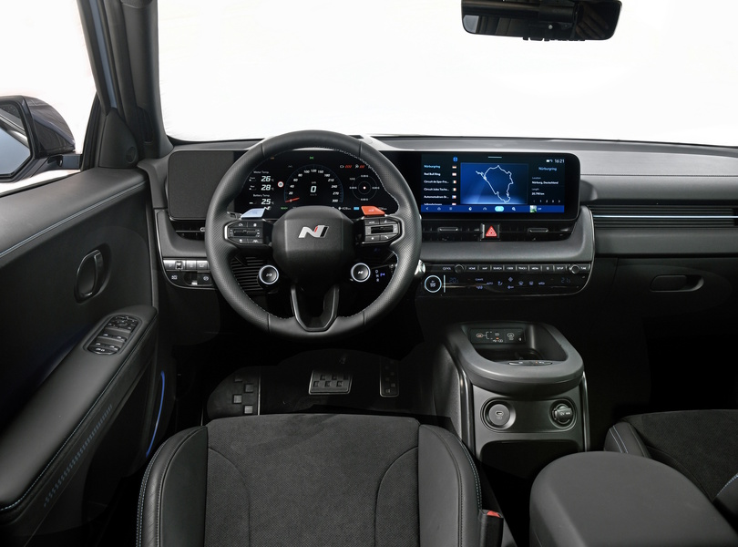 Die N-typischen Tasten und Schalter sind rund um den Lenkradkranz angeordnet Foto: Hyundai