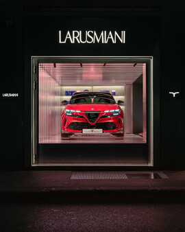 Auch wenn er den Namen nicht mehr tragen darf, seinen ersten öffentlichen Auftritt erlebt Alfa Romeos erstes Elektro-SUV jetzt dennoch in Mailand. Die norditalienische Metropole steht derzeit noch bis zum Ende der Woche im Zeichen der Designwoche. Deshalb hat Alfa einen außergewöhnlichen Ort für die Publikumspremiere gewählt. Zum ersten Mal öffentlich gezeigt wird der nun in Junior umgetaufte Milano in der Boutique der Luxusmodemarke Larusmiani auf der Mailänder Edeleinkaufsstraße Via Monte Napoleone.