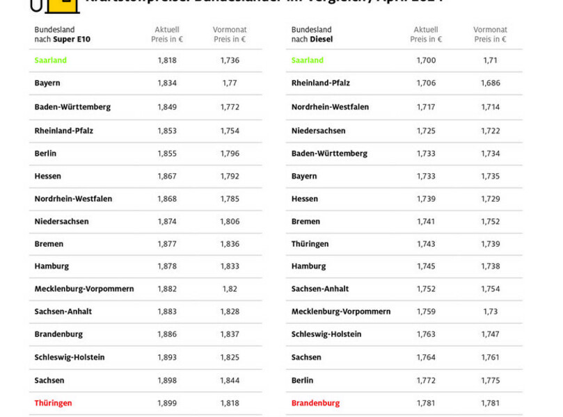 Kraftstoffpreise im Bundesländer-Vergleich. Foto: Autoren-Union Mobilität/ADAC