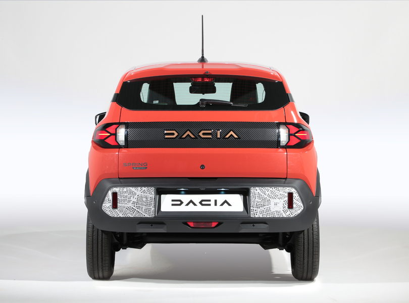 mid Troisdorf - Im Scheinwerferlicht des Filmstudios in der Nähe des Köln-Bonner Flughafens: der modellgepflegte Dacia Spring von hinten. Uli Sonntag / Dacia