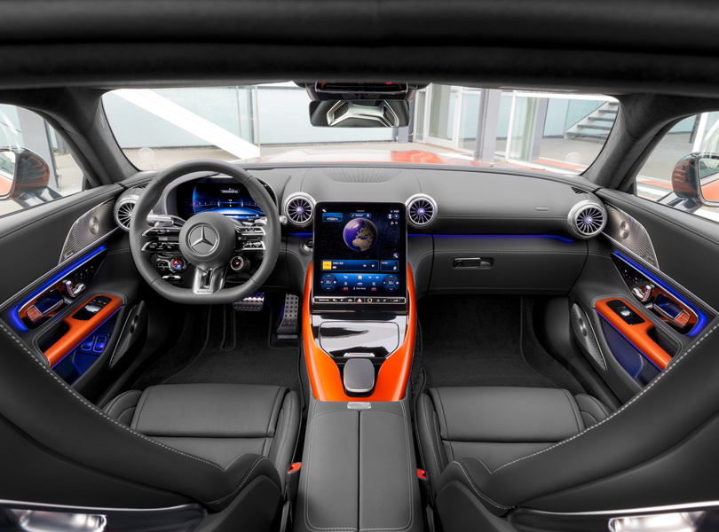 mid Groß-Gerau - Die Cockpit-Gestaltung bis hin zum Hochformatdisplay in der Mittelkonsole ist auf die Fahrerin oder den Fahrer fokussiert. Das praxisgerechte Maßkonzept mit optional 2+2 Sitzen bietet großzügige Platzverhältnisse im Innenraum. Mercedes-AMG