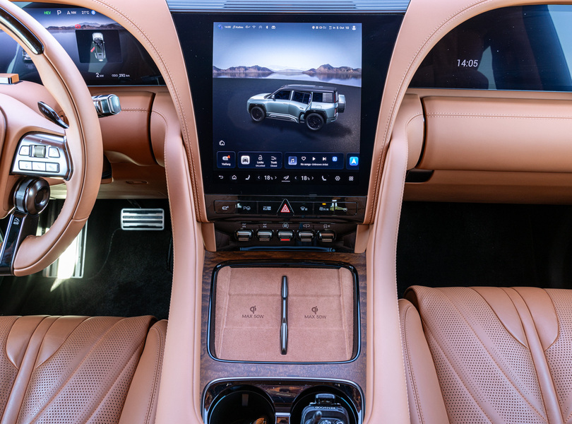 mid Rheinmünster - Die Handy Ladeschalen laden mit bis zu 50 W pro Ablage. Weiter hinten in der Mittelkonsole ist noch ein Kühlschrank verbaut, der auch wärmen kann. Mike Neumann / mid