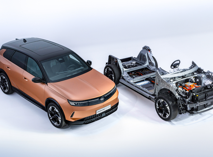 Eine kleine Rüsselsheimers Revolution findet ebenso unter dem Blech statt. Der neue Grandland ist der erste Opel, der auf der vorwiegend für Elektroautos entwickelten Stellantis-Plattform STLA Medium steht Foto: Opel