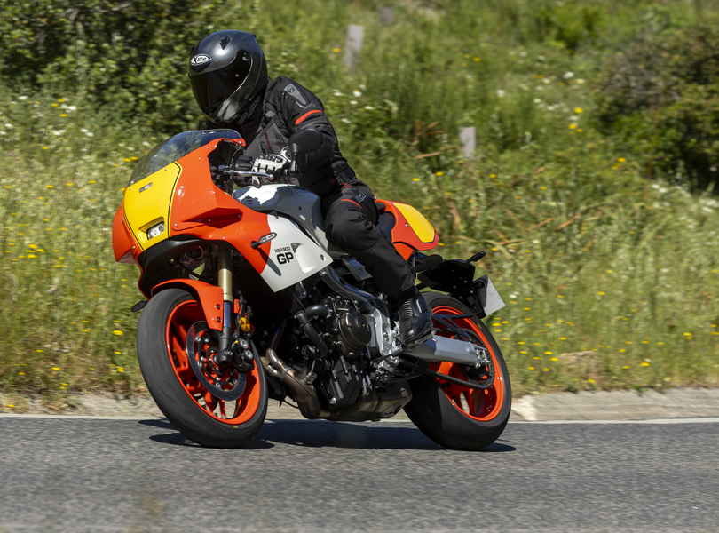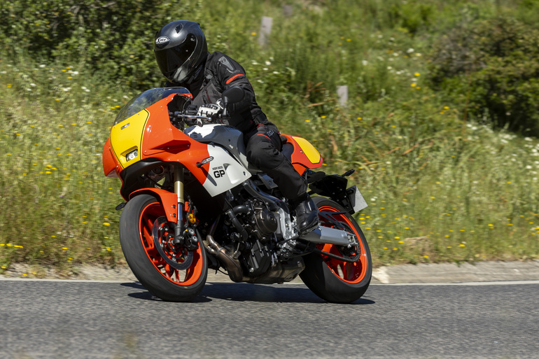 Die Yamaha XSR 900 GP ist kein Fahrzeug für die Rennstrecke. Sie ist als sportliches Landstraßenmotorrad konzipiert, das freilich auch auf einem Rundkurs herrliches Oldtime-Rennfeeling aufkommen lässt Foto: Yamaha