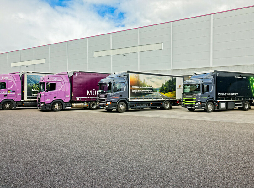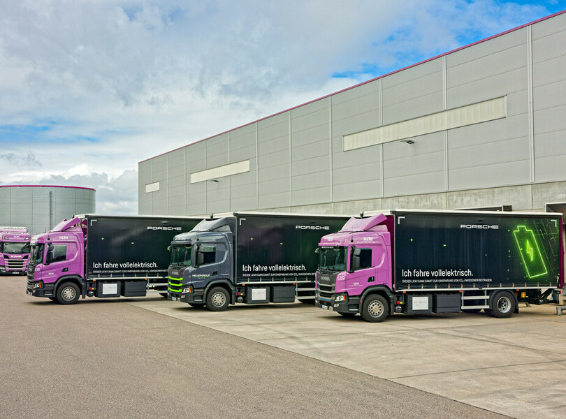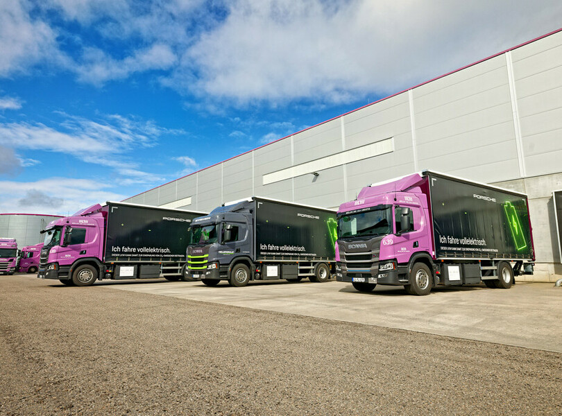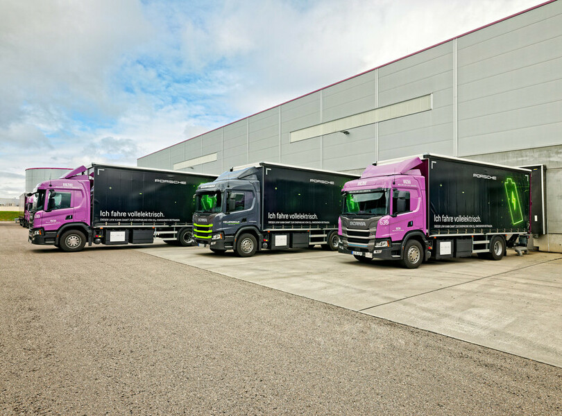 Porsche setzt in der Transportlogistik auf alternative Antriebe. An den Standorten Zuffenhausen, Weissach und Leipzig setzt der Sportwagenhersteller zusammen mit seinen Spediteuren sechs neue Lastwagen mit Elektroantrieb ein. Sie stammen überwiegend von Scania und transportieren rund um die Werke Produktionsmaterialien. Sie ergänzen eine bereits bestehende Flotte von 22 mit Biogas betriebene Lkw. Ein weiterer elektrischer Autotransporter liefert Neufahrzeuge von Zuffenhausen in die Schweiz. Die E-Trucks werden weitestgehend mit grünem Strom betrieben.