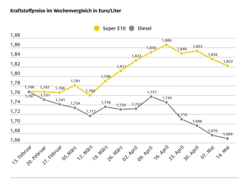 Die Entwicklung der Kraftstoffpreise in den vergangenen Wochen. Foto: Autoren-Union Mobilität/ADAC