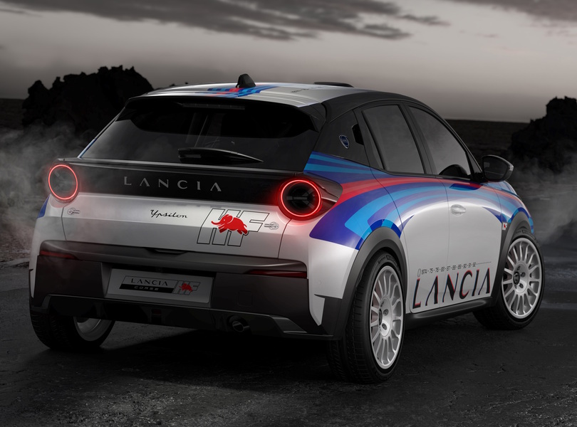 Der Straßenversion des Ypsilon HF setzt hingegen auf einen 240 PS starken E-Antrieb Foto: Lancia