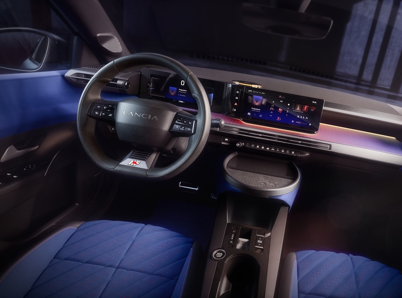 Der Innenraum des für 2025 angekündigten Lancia Ypsilon HF ist digital und sportlich eingerichtet Foto: Lancia