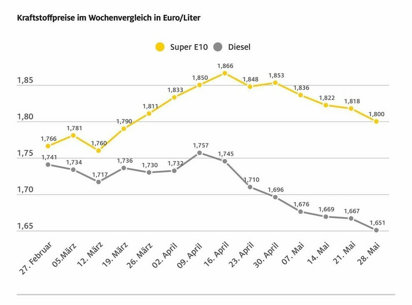 Die Entwicklung der Kraftstoffpreise in den vergangenen Wochen. Foto: Autoren-Union Mobilität/ADAC