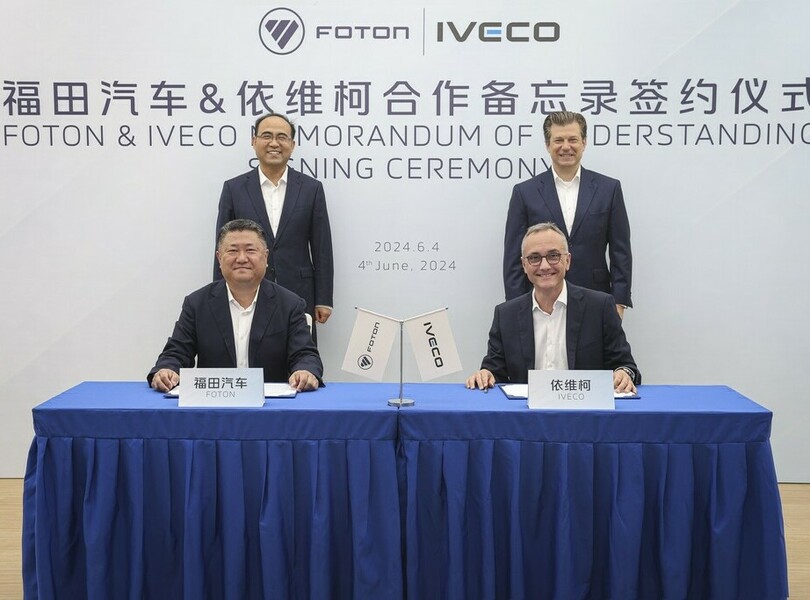 Iveco und der chinesische Nutzfahrzeughersteller Foton haben eine Absichtserklärung unterzeichnet, um eine mögliche Zusammenarbeit in den Bereichen Elektrofahrzeuge und Komponenten sowie gemeinsame Geschäftsmöglichkeiten für Europa und Südamerika zu prüfen. Iveco plant, sein Angebot an leichten Nutzfahrzeugen unterhalb des Daily mit 3,5 bis 7,2 Tonnen zulässigem Gesamtgewicht zu erweitern. Gemeinsam mit Foton soll die Möglichkeit geprüft werden, die Vertriebskanäle von Iveco für die Vermarktung eines elektrischen Kastenwagens in Europa und Südamerika unterhalb der 3,5-Tonnen-Klasse zu nutzen.