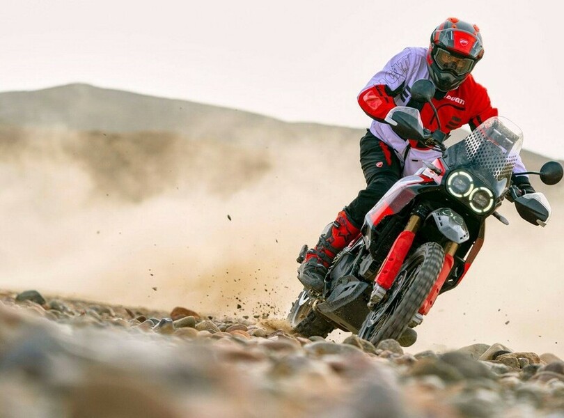 Für reise- und abenteuerlustige Enduristen hat Ducati die neue Bekleidungskollektion ,,Explorer" entworfen. Sie wurde mit Unterstützung der Testfahrer entwickelt, die an der Entstehung der Desert X Rally mitgewirkt haben. Das Design zeichnet sich durch charakteristische Farbblöcke aus. Herzstück der Kollektion ist eine Textilkombi, bestehend aus Jacke und Hose, die auch in einer für Frauen geeigneten Passform erhältlich ist. Dazu gibt es die Stiefel Ducati Explorer T7. Als Handschuhe empfiehlt Ducati den Atacama C2 aus Känguru-Leder und dem Bekleidungskatalog 2024. Die Ducati-Explorer-Kollektion umfasst zusätzlich Freizeitkleidung.