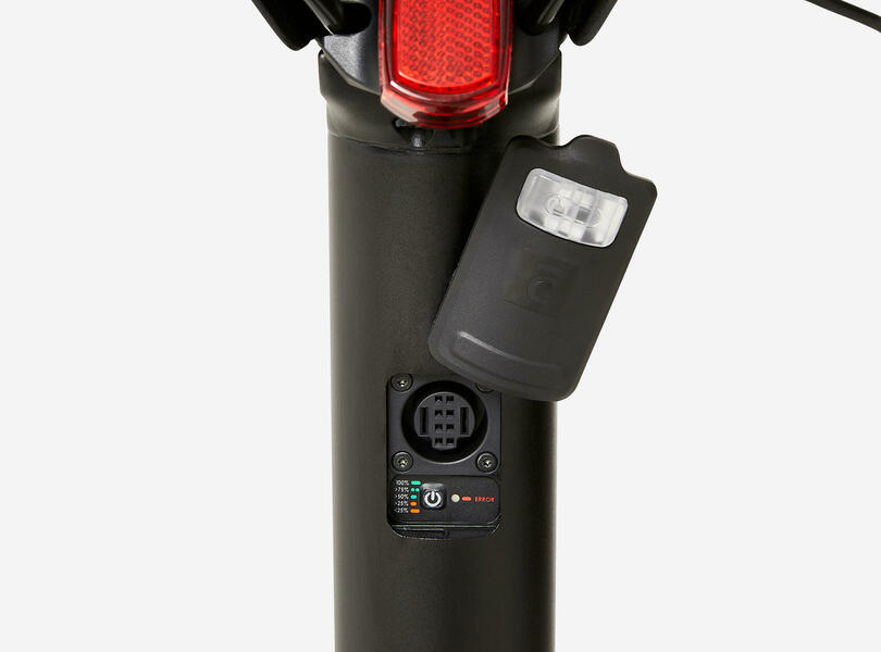 In der Sattelstütze steckt die 252-Wh-Batterie. Eine Ladebuchse ist ebenfalls integriert Foto: Decathlon