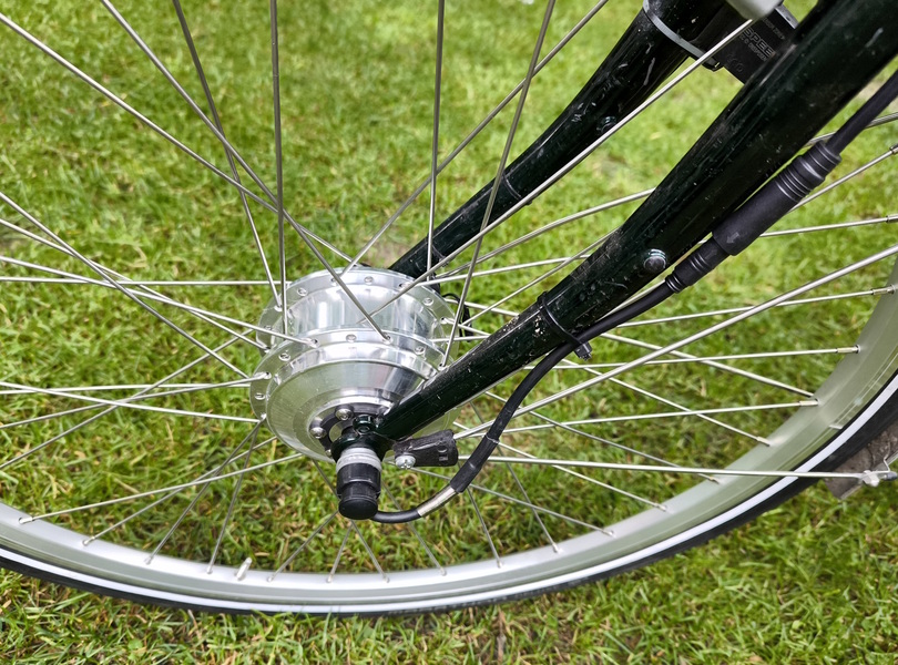 Der im blitzenden Metallgehäuse integrierte Frontmotor nimmt den Platz des bisherigen Nabendynamos ein Foto: SP-X/Mario Hommen