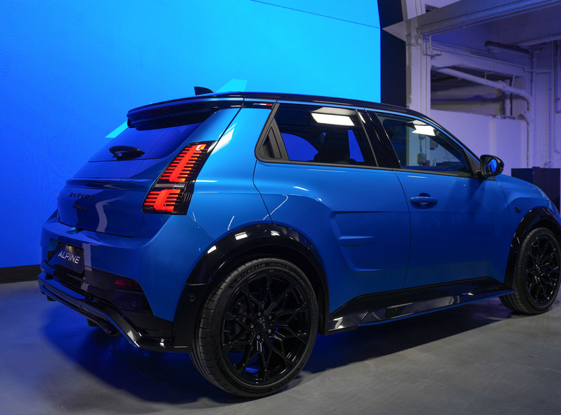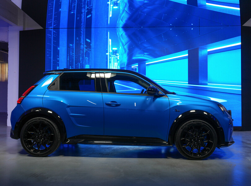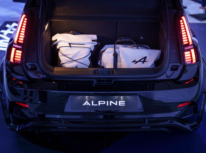 Die Ähnlichkeit mit dem künftigen Renault R5 ist deutlich, der "Alpine-Swosh" an den Hecktüren typisch Foto: Renault