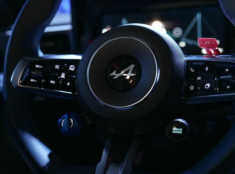 Formel-1-Gefühle: Das Sportlenkrad trägt markante Tasten für den Überhol-Boost und fürs Rekuperieren Foto: Renault