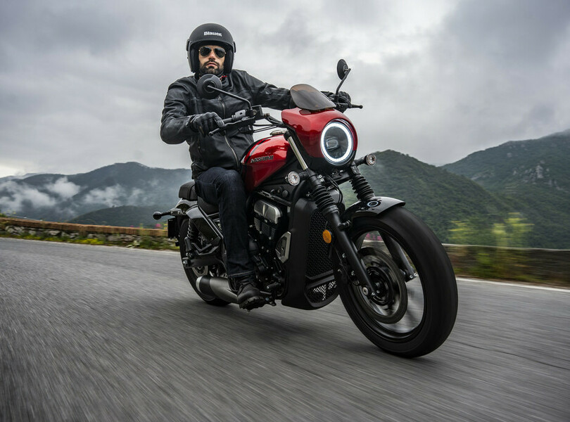 Moto Morini hätte es sich leicht machen und einfach den Motor der Seiemmezzo nehmen können. Aber die neue Calibro bekommt einen 700-Kubik-Antrieb mit acht PS und vor allem 14 Newtonmetern mehr Drehmoment. Das Custombike mit Riemenantrieb erinnert stilistisch ein wenig an die Honda CMX 500 Rebel, besitzt aber serienmäßig eine kleine Lampenmaske. Zudem gibt es als zweite Modellvariante die Calibro Bagger mit leichter Touringverkleidung und den obligatorischen Seitenkoffern.