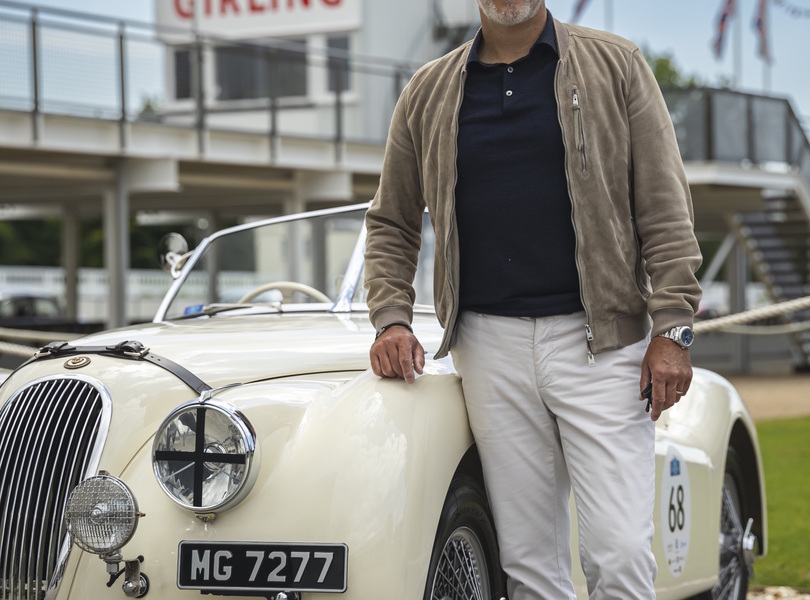 Jaguar-Chef Rawdon Glover neben einem Jaguar XK120 aus dem Jahr 1950 am Goodwood Circuit Foto: Jaguar