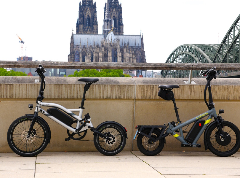 Während ältere Steeron-Modellen (rechts) auf Pedalantrieb verzichten, qualifiziert sich das B25 (links) als Pedelec Foto: Steeron