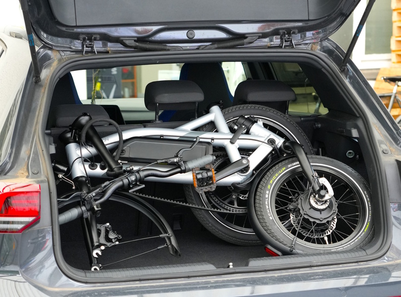 Wird das Vorderrad ausgebaut, ist auch eine Mitnahme des B25 im Pkw-Kofferraum möglich Foto: Steeron