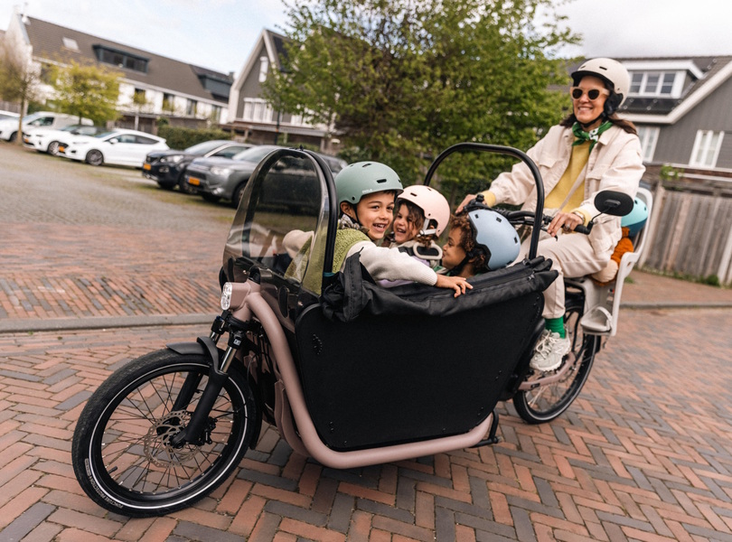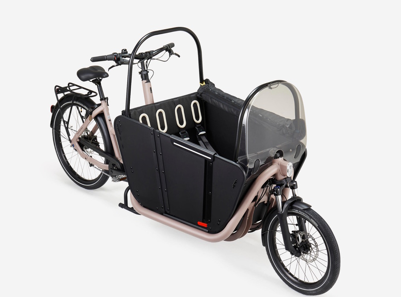Btwin Long John F900E Family von Decathlon bietet drei Kindersitzplätze in seiner Transportbox Foto: Decathlon