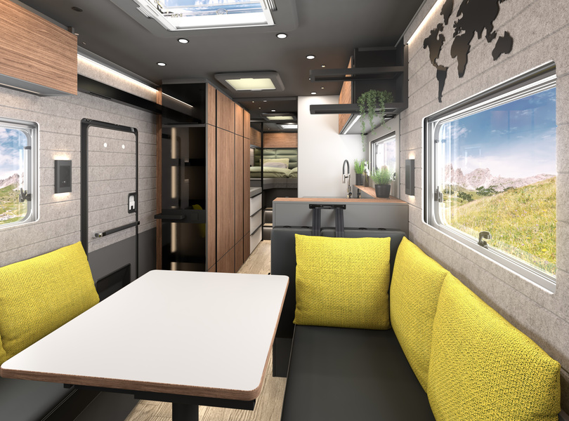Für ein wohnliches Ambiente sorgt die Wandverkleidung aus grauem Filz, wie man sie ebenfalls bereits aus dem iSmove kennt Foto: Niesmann+Bischoff