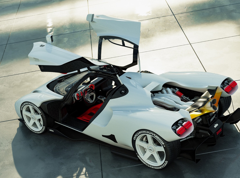 Hypercar nennt die neue Automarke Nilu27 ihr Erstlingswerk mit eindrucksvollen Flügeltüren Foto: Nilu27