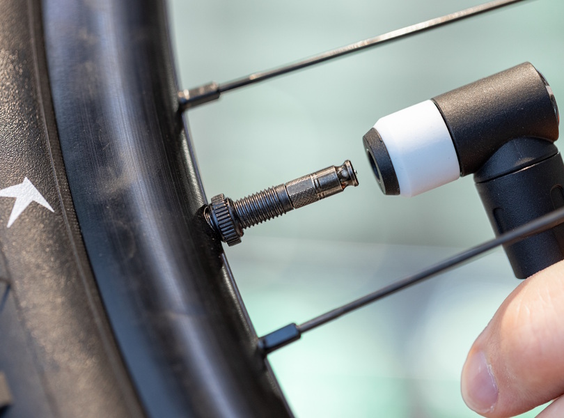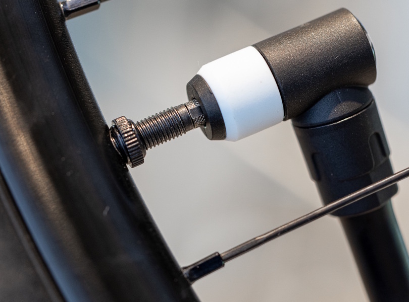Wird der Pumpenkopf über das Ventil gestülpt, signalisiert ein Klickgeräusch die fortan feste Verbindung Foto: Schwalbe