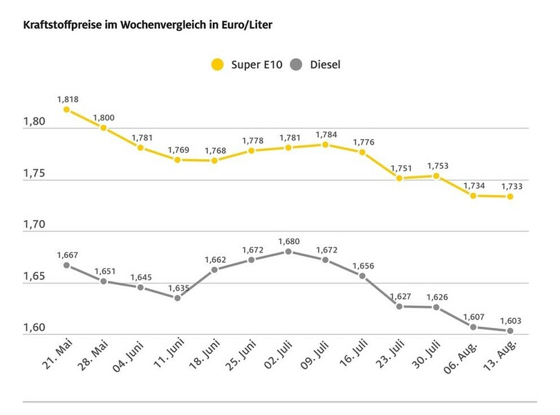 Die Entwicklung der Kraftstoffpreise in den vergangenen Wochen. Foto: Autoren-Union Mobilität/ADAC