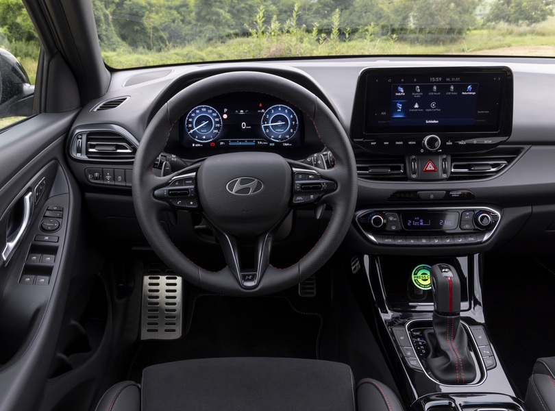 Der Innenraum ist sportlich eingerichtet. Der Arbeitsplatz wirkt allerdings schon leicht angestaubt Foto: Hyundai