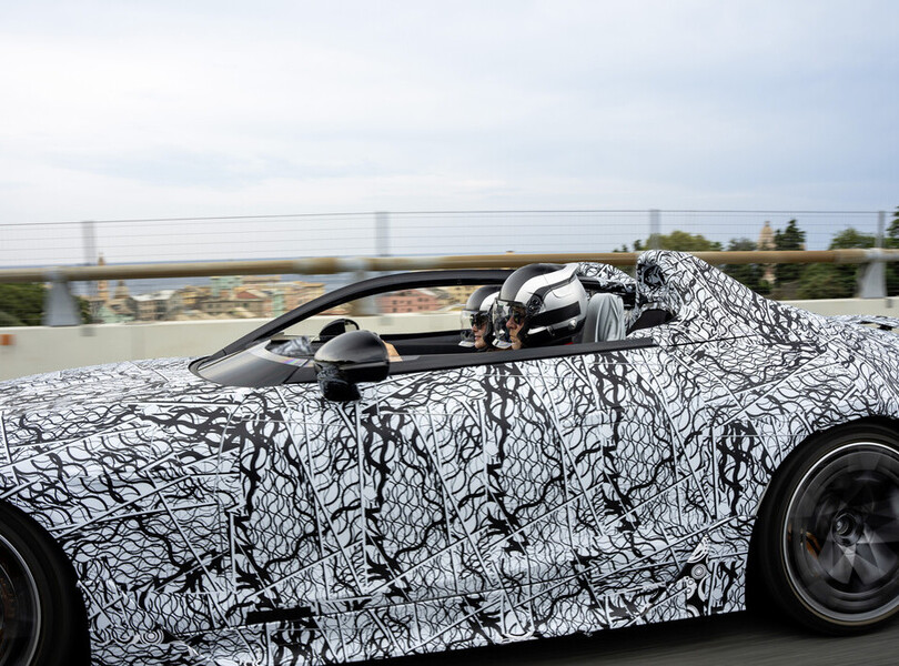 Noch getarnter Prototyp des Mercedes-AMG Pure Speed. Foto: Autoren-Union Mobilität/Mercedes-Benz