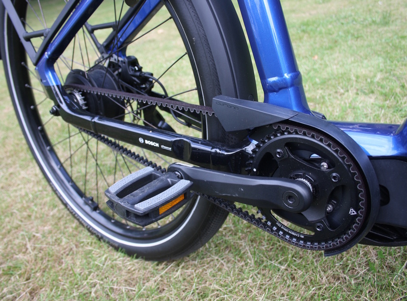 Saubere Sache: Die Pedalkraft wird per Riemenantrieb an das Hinterrad mit Enviolo-Nabenschaltung geleitet Foto: SP-X/Mario Hommen