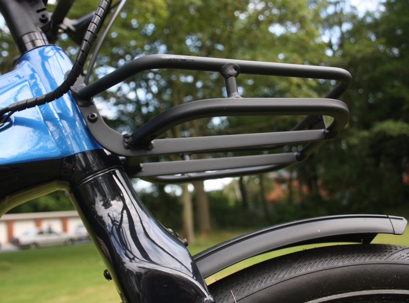 Praktisch ist der kleine Frontträger, auf dem sich zum Beispiel eine Brötchentüte transportieren lässt, die man dank der seitlichen Umrandung nicht unbedingt verzurren muss Foto: SP-X/Mario Hommen