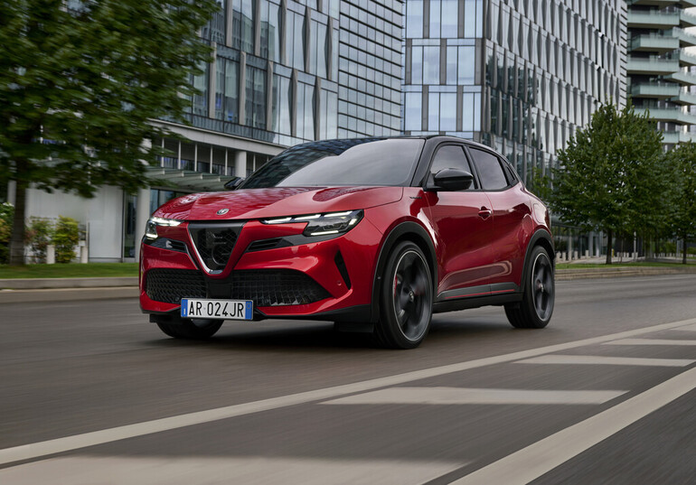 Der neue Alfa Romeo Junior startet heute offiziell bei den deutschen Alfa Romeo Vertriebsstandorten. Die rein elektrisch angetriebene Kompakt-SUV-Variante „Elettrica“ mit 115 kW-Maschine (156 PS) steht ab sofort zu Preisen ab 39.500 Euro bei den Händlern. Exakt 10.000 Euro günstiger folgt im Oktober der Alfa Romeo Junior „Ibrida“ mit 136 PS (100 kW) starkem Hybrid-Antrieb. Und Ende des Jahres rollt das Topmodell des „Sport Urban Vehicle“ Junior „Veloce“ mit 207 kW (280 PS) starkem Elektromotor für 48.500 Euro zum Händler.