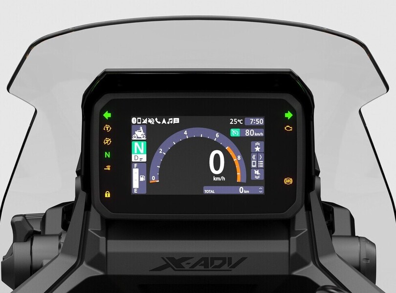 Honda unterzieht den X-ADV für das kommende Jahr einer Modellpflege. Der Adventure-Scooter bekommt ein nachgeschärftes Design, LED-Doppelscheinwerfer mit neuem Tagfahrlicht und integrierten Blinkern sowie einen Tempomaten. Die Sitzbank erhält eine neue Kontur und zehnprozentige Aufpolsterung. Das überarbeitete Fünf-Zoll-TFT-Display ermöglicht über die Road-Sync-App die Smartphone-Einbindung. Zusätzlich zur Sprachsteuerung kann der Fahrer über den hinterleuchteten Vier-Wege-Kippschalter an der linken Armatur neben den Smartphone-Funktionen auch die Turn-by-Turn-Navigation auf dem Bildschirm nutzen.