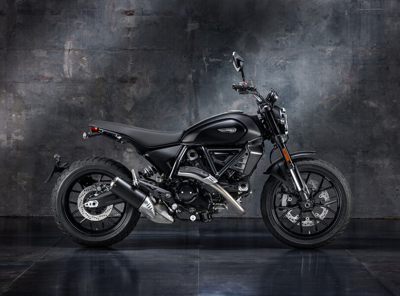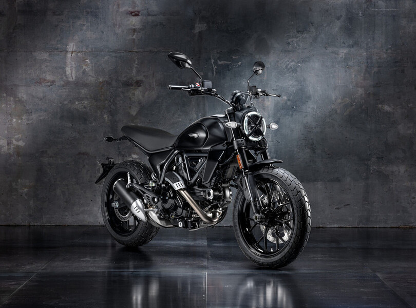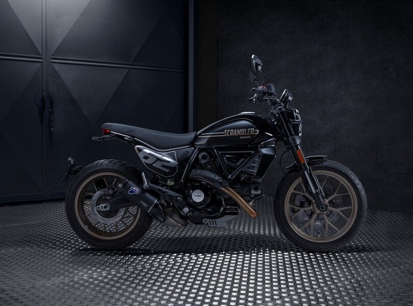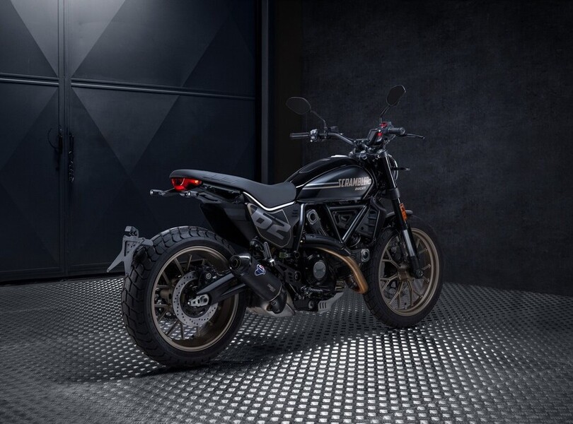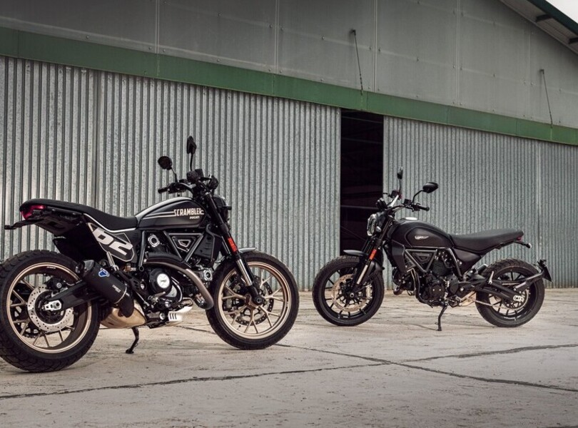 Ducati erweitert die aktuelle Scrambler-Familie um die Icon Dark. Sie verkörpert in mattem Schwarz das puristische Einstiegsmodell. Das Scrambler-Logo auf dem Tank ist in Dark Stealth ausgeführt. Die Seitenverkleidungen und das Heck sind ebenfalls bewusst minimalistisch gehalten. Für die kommende Saison wurde zudem die Scrambler Full Throttle optisch aktualisiert, um den klassischen Charakter stärker zu betonen. Sie erinnert an die in den USA populären Flattracker und trägt auf der seitlichen Nummerntafel eine „62“ als Hommage an das Erscheinungsjahr 1962 der ersten Ducati Scrambler. Für das Modelljahr 2025 erhält die Full Throttle eine geänderte Sitzpolsterung und eine schwarz-bronzene Heritage-Lackierung, die sich auch an den vom Rennsport der Siebziger inspirierten Felgen findet.