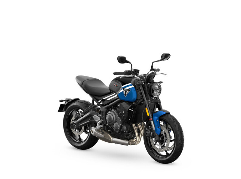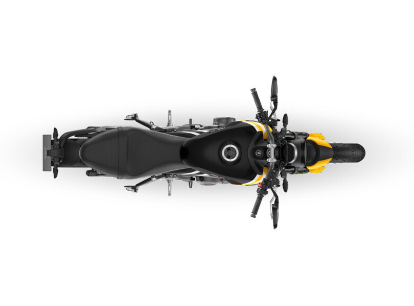 Triumph spendiert der Trident 660 zum neuen Modelljahr ein vor allem technisches Update. Die nach wie vor einzige Dreizylinder im Segment erhält serienmäßig einen Tempomaten und einen Up-and-down-Quickshifter. Zu den beiden bisherigen Fahrprogrammen gesellt sich noch ein Sport-Modus mit schnellerem Ansprechverhalten. Die Assistenzsysteme wurden kurvenoptimiert, und die Trident bekommt ist in Zukunft auch konnnektivitätstauglich. Via Bluetooth und App wird beispielsweise eine Turn-by-Turn-Navigation möglich. Neben neuen Farben sticht auch die grafische Gestaltung mit zwei weißen Streifen über den Tank und die Seitendeckel hervor. Neu gestaltet wurden unter anderem die obere Gabelbrücke und das Bremspedal – beide aus geschmiedetem Aluminium.