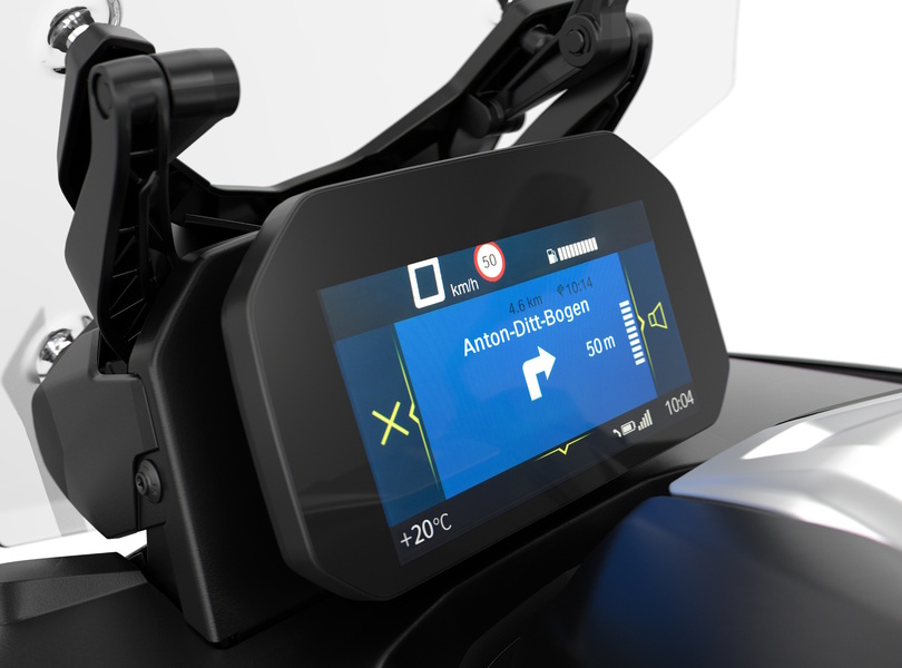 Ein großes 10,25 Zoll-Display mit der Möglichkeit einer Kartennavigation bietet BMW für den C 400 GT nun optional Foto: BMW