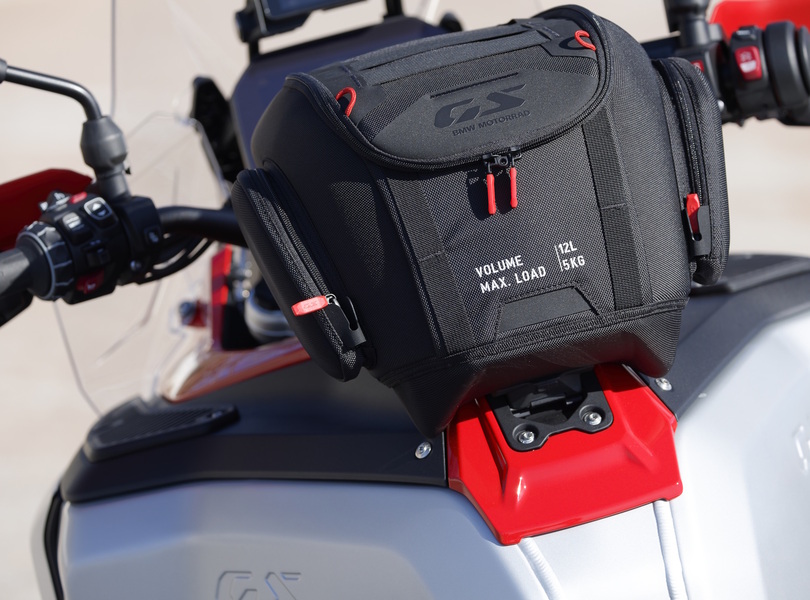Zu den praktischen Systemlösungen von BMW gehört unter anderem ein Tankrucksack Foto: BMW