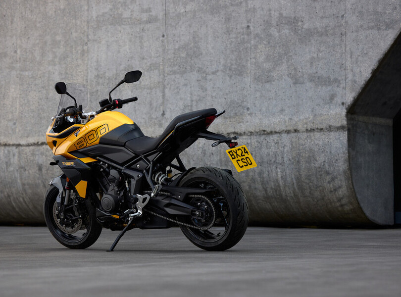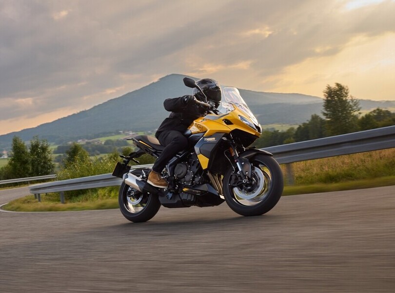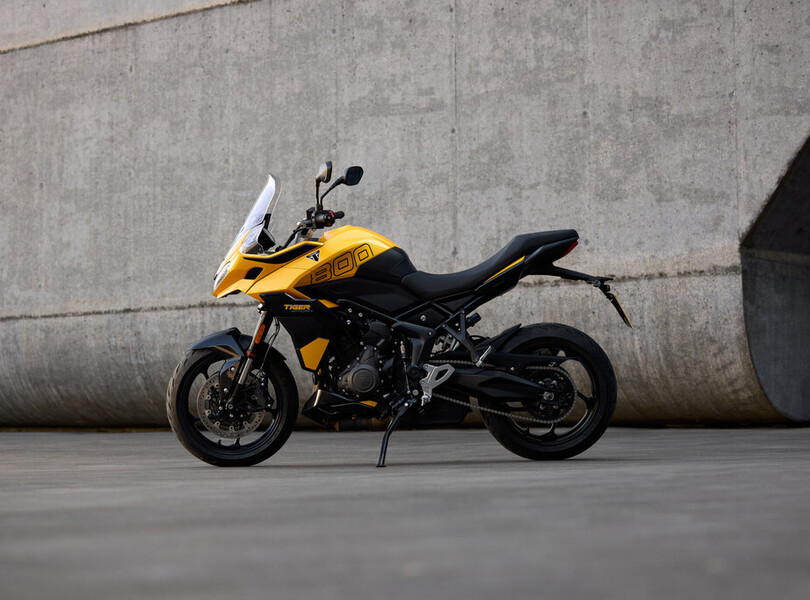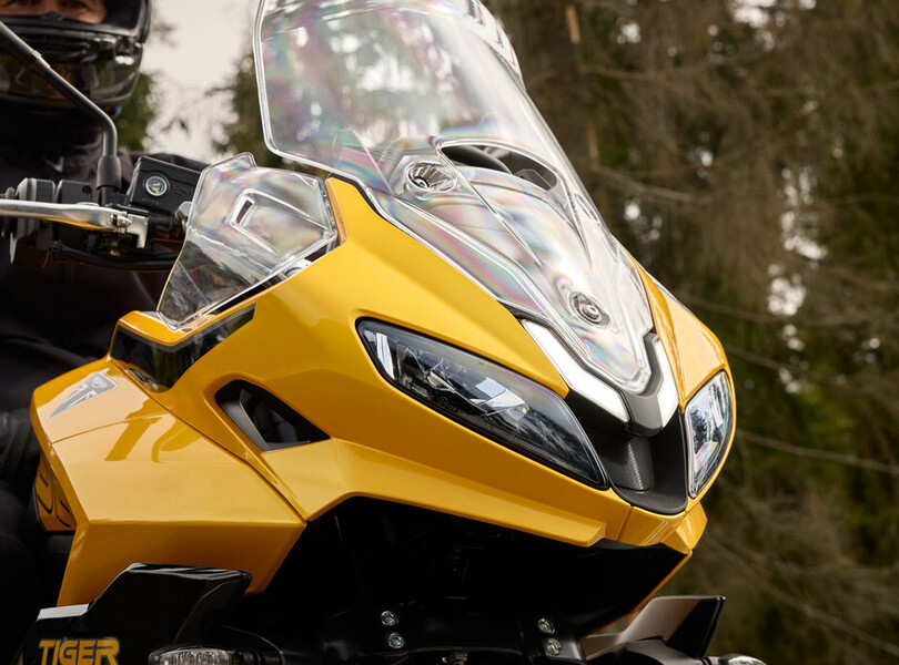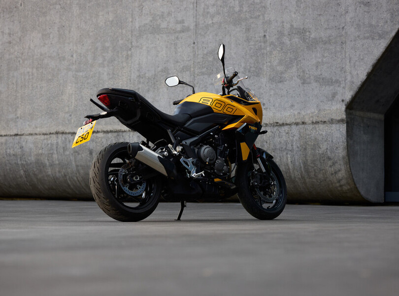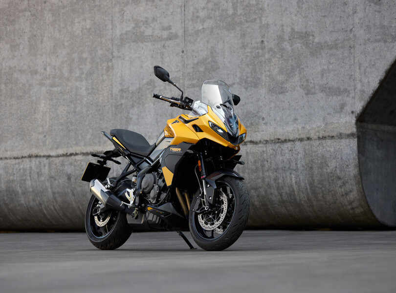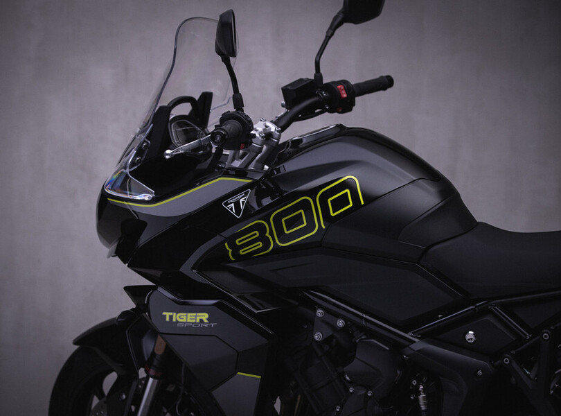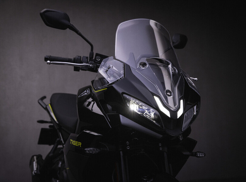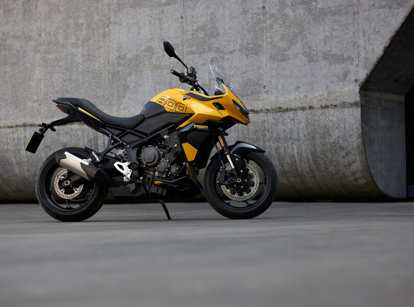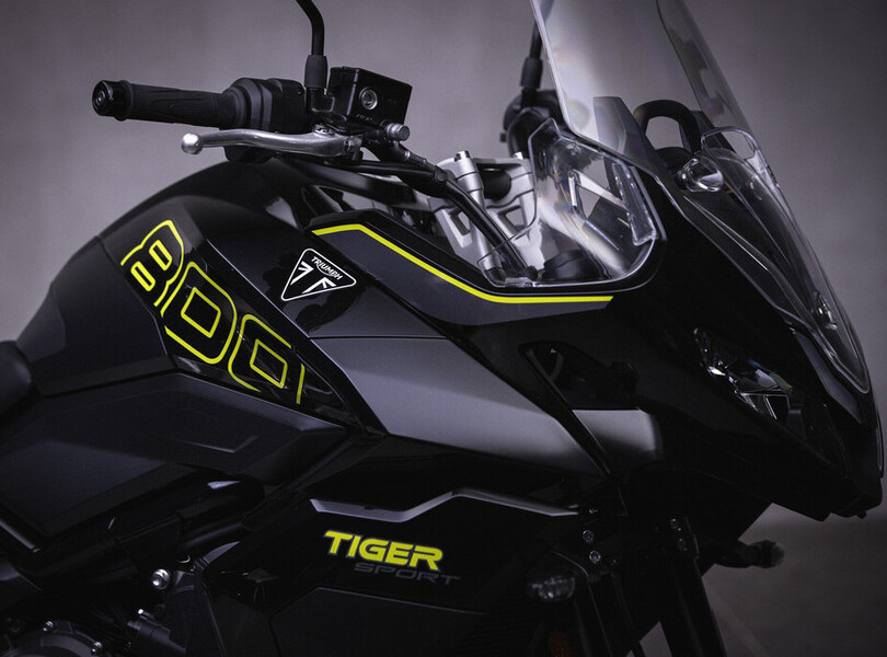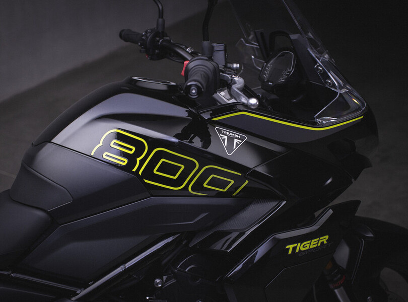 Vor fünf Jahren verschwand die Tiger 800 bei Triumph aus dem Programm. Nach dem Erfolg der Trident 660 schließen die Briten die Lücke zu den 900er-Modellen nun mit der neuen Tiger Sport 800. Sie orientiert sich optisch an ihrer kleineren Schwester, der Tiger Sport 660, und wird von einem komplett neu entwickelten Motor angetrieben. Der 798 Kubikzentimeter große Dreizylinder leistet 115 PS (85 kW) und liefert ein Drehmoment von bis zu 84 Newtonmetern, das sind 20 PS und 5 Nm mehr als bei der letzten Tiger 800. Aus Reiseenduro wird Sporttourer.