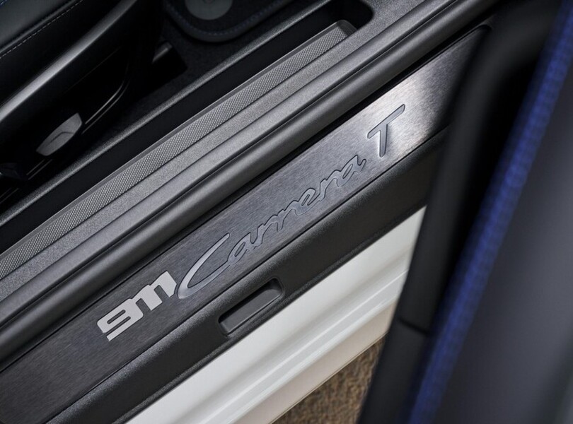 Porsche erweitert die Modellauswahl bei seiner Markenikone 911 um den puristischen Carrera T mit Sechs-Gang-Handschaltung. Mit Leichtbauverglasung und reduzierter Dämmung wiegt er in der leichtesten Konfiguration mit Vollschalensitzen 1478 Kilogramm. Das sind über 40 Kilogramm weniger als der 911 Carrera. Erstmals ist der T auch als Cabriolet verfügbar.