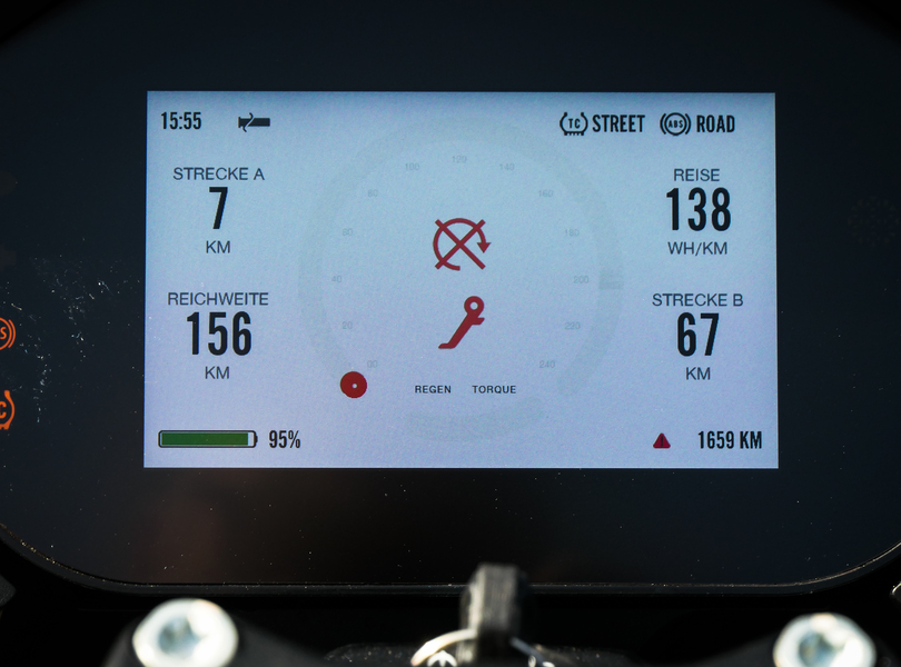 Die Zero DS schaffte die in vollem Ladezustand angezeigten 159 Kilometer nicht nur ohne Einschränkung – sie legte trotz überwiegend sehr zügiger Fahrweise sogar noch eine Handvoll Kilometer drauf Foto: Rita Niehues
