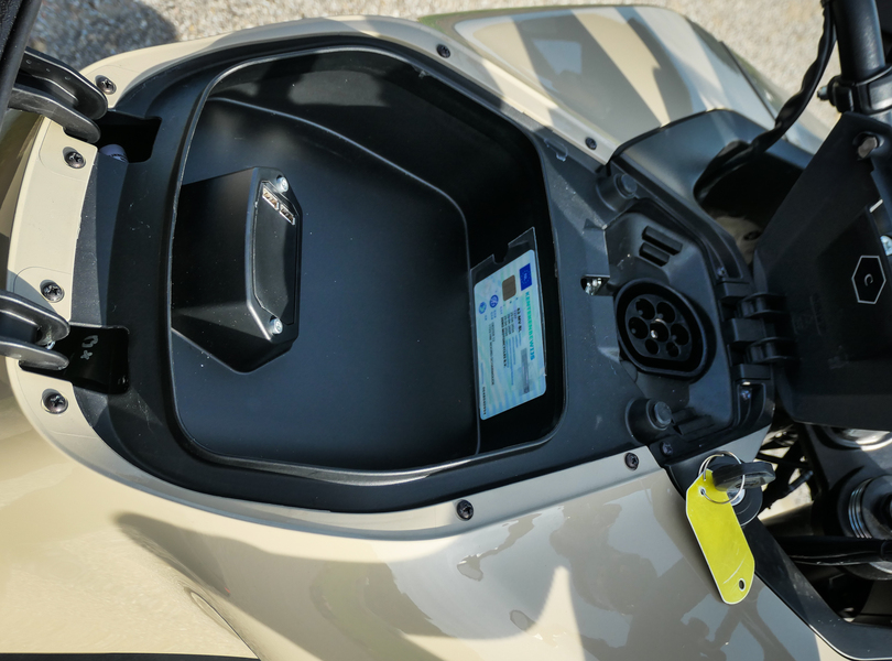 Unter der Tankattrappe bietet die DS ein kleine Staufach mit USB-Ladebuchsen sowie den Anschluss für das Ladekabel Foto: SP-X/fbn