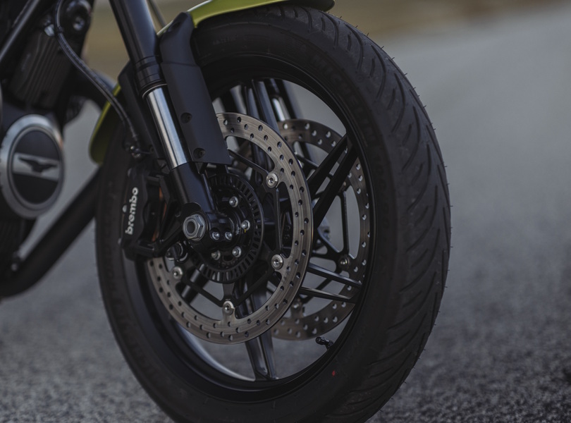 Die Vorderradbremsanlage bietet, und das ist ein Novum in der V7-Familie, zwei große Scheiben Foto: Moto Guzzi