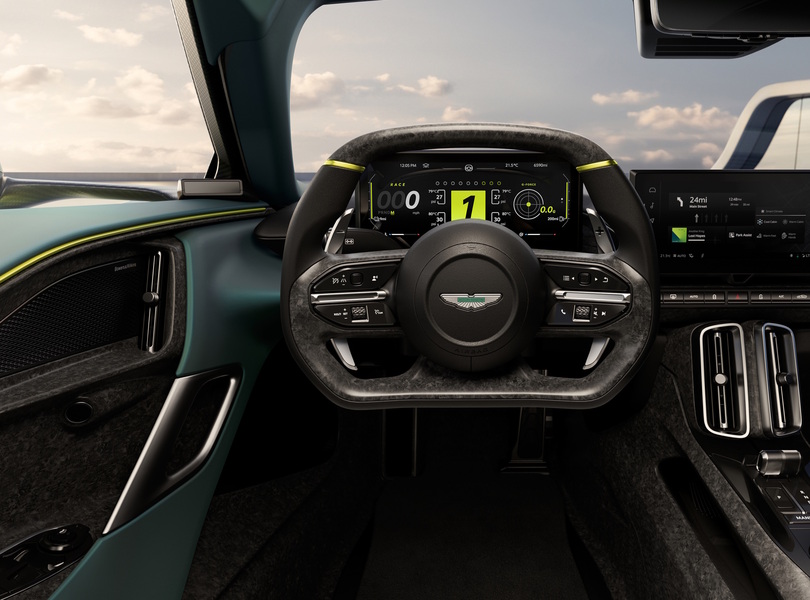 Der Arbeitsplatz des Fahrers wurde sehr übersichtlich gestaltet Foto: Aston Martin