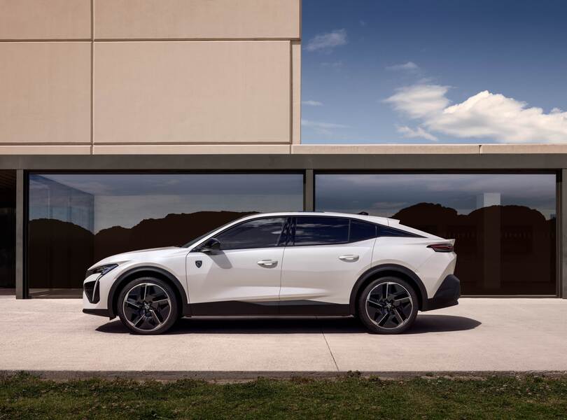 Vollelektrisch in die Zukunft – Der aktuelle Peugeot E-408 präsentiert sich im Crossoverdesign Foto: Peugeot